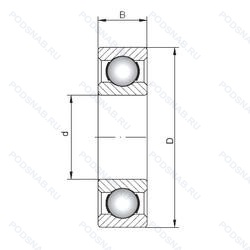| Обозначение | Конструктивные особенности | Внутренний (d) | Наружный (D) | Ширина (B) |