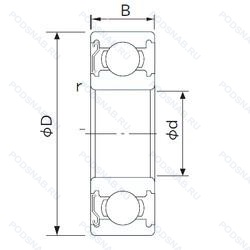 | Обозначение | Конструктивные особенности | Внутренний (d) | Наружный (D) | Ширина (B) |