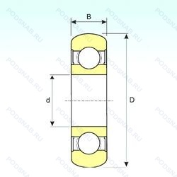| Обозначение | Конструктивные особенности | Внутренний (d) | Наружный (D) | Ширина (B) |