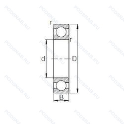 | Обозначение | Конструктивные особенности | Внутренний (d) | Наружный (D) | Ширина (B) |