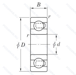 | Обозначение | Конструктивные особенности | Внутренний (d) | Наружный (D) | Ширина (B) |