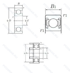 | Обозначение | Конструктивные особенности | Внутренний (d) | Наружный (D) | Ширина (B) |