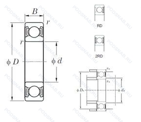 | Обозначение | Конструктивные особенности | Внутренний (d) | Наружный (D) | Ширина (B) |