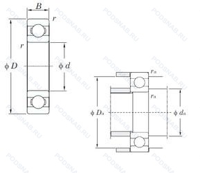 | 6305LLBNR | Канавка и стопорное кольцо на наружном кольце. Бесконтактное нитриловое уплотнение. |