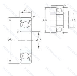 | Обозначение | Конструктивные особенности | Внутренний (d) | Наружный (D) | Ширина (B) |