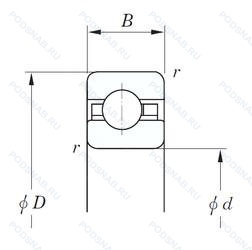 | Обозначение | Конструктивные особенности | Внутренний (d) | Наружный (D) | Ширина (B) |