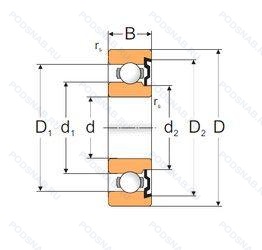 | Обозначение | Конструктивные особенности | Внутренний (d) | Наружный (D) | Ширина (B) |