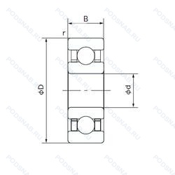 | Обозначение | Конструктивные особенности | Внутренний (d) | Наружный (D) | Ширина (B) |