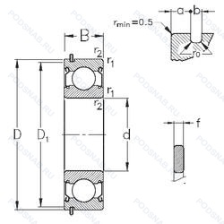 | 6315DDU NR | Канавка под стопорное кольцо на наружном кольце с соответствующим стопорным кольцом. Резиновые уплотнения с каждой стороны подшипника. |
