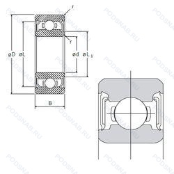 | Обозначение | Конструктивные особенности | Внутренний (d) | Наружный (D) | Ширина (B) |