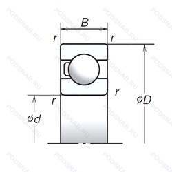 | Обозначение | Конструктивные особенности | Внутренний (d) | Наружный (D) | Ширина (B) |