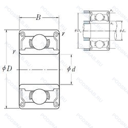 | Обозначение | Конструктивные особенности | Внутренний (d) | Наружный (D) | Ширина (B) |