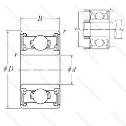 | Обозначение | Конструктивные особенности | Внутренний (d) | Наружный (D) | Ширина (B) |