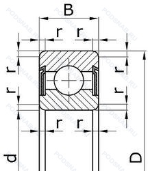 | Обозначение | Конструктивные особенности | Внутренний (d) | Наружный (D) | Ширина (B) |