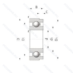| Обозначение | Конструктивные особенности | Внутренний (d) | Наружный (D) | Ширина (B) |