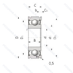 | Обозначение | Конструктивные особенности | Внутренний (d) | Наружный (D) | Ширина (B) |