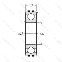 | Обозначение | Конструктивные особенности | Внутренний (d) | Наружный (D) | Ширина (B) |