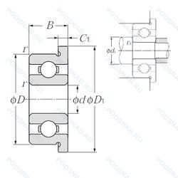 | Обозначение | Конструктивные особенности | Внутренний (d) | Наружный (D) | Ширина (B) |
