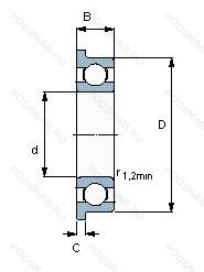 W 618/6 R — Шариковый радиальный однорядный подшипник, модификация основного исполнения 618, производство SKF.