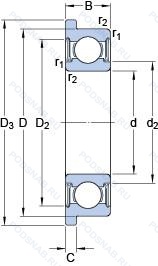 | W 628-2RS1 | Усиленные листовой сталью контактные уплотнения из акрилонитрил-бутадиенового каучука (NBR) с обеих сторон подшипника. Нержавеющая сталь. |