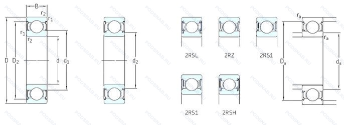 | Обозначение | Конструктивные особенности | Внутренний (d) | Наружный (D) | Ширина (B) |