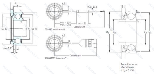 | 6206LLBNR | Канавка и стопорное кольцо на наружном кольце. Бесконтактное нитриловое уплотнение. |