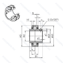 Подшипники с цилиндрическим наружным кольцом, двухсторонними уплотнениями, c удлиненным с обеих сторон внутренним кольцом и стопорным винтом для фиксации на валу, 1.3/16.