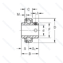 | UCS206LD1N | ISO | Канавка для стопорного кольца на наружном кольце. |
