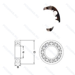 | Обозначение | Конструктивные особенности | Внутренний (d) | Наружный (D) | Ширина (B) |