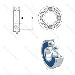 | Обозначение | Конструктивные особенности | Внутренний (d) | Наружный (D) | Ширина (B) |