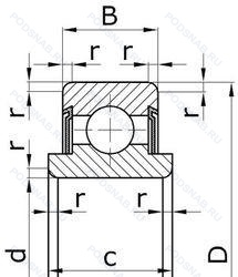 | Обозначение | Конструктивные особенности | Внутренний (d) | Наружный (D) | Ширина (B) |