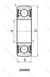 | Обозначение | Конструктивные особенности | Внутренний (d) | Наружный (D) | Ширина (B) |