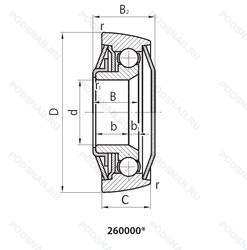 | Обозначение | Конструктивные особенности | Внутренний (d) | Наружный (D) | Ширина (B) |