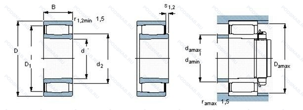| 239/1180W33 | Роликовый радиальный сферический двухрядный подшипник. Кольцевая канавка и три отверстия для смазывания в наружном кольце подшипника. | 1180.00 | 1540.00 | 272.00 |