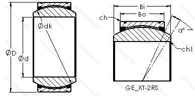 | GE 180 ES-2LS | ISO | Контактное уплотнение с обеих сторон подшипника. Разъемное наружное кольцо со смазочными отверстиями. |