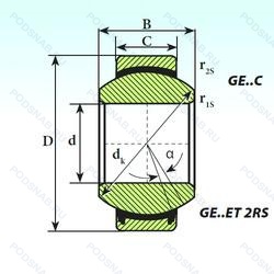 | GE 220GS-2RS | Резиновые уплотнения с каждой стороны подшипника. Подшипник с предварительным натягом и цилиндрическим наружним кольцом. |