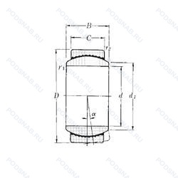 | B14LSS | Сферический подшипник скольжения. Две резиновые защитные шайбы. Сталь. Масляные отверстия и канавки. | 22.23 | 36.51 | 19.43 |