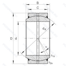 | GE45LO | Стальная поверхность скольжения. Внутреннее кольцо расширено с обеих сторон. Одна осевая канавка на внешнем кольце. |