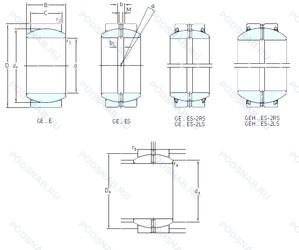 | GEG50ES | ISO | Повышенной грузоподъемности. Разъемное наружное кольцо со смазочными отверстиями. |