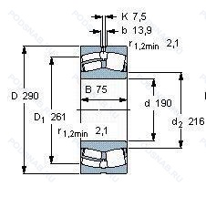 Размер подшипника: 190x290x75 мм.