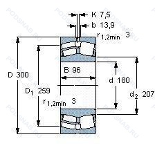Размер подшипника: 180x300x96 мм.