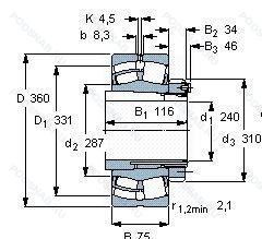 | 23952EM D1 | Канавка и три смазочных отверстия на наружном кольце. Стандартный фланцевый ( с резьбой и сквозным отверстием). |