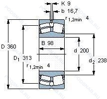 Модификации сферического роликового подшипника 22240CC/C3W33 — это измененное основное конструктивное исполнение 22240, основные размеры (200x360x98) не отличаются.