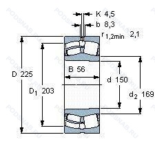 Размер подшипника: 150x225x56 мм.