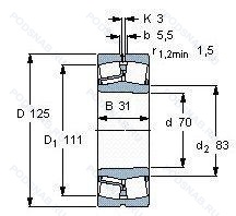 | 22214EK B33 J30 | Коническое отверстие. конус 1/12. Радиальный внутренний зазор больше нормального. W33 (SKF)= смазочная канавка и три отверстия в наружном кольце подшипника. |
