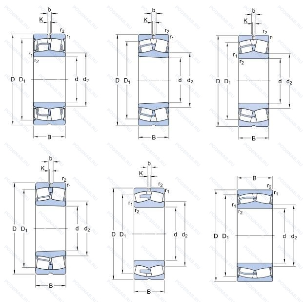 Модификации сферического роликового подшипника BS2-2209-2RSK/VT143 — это измененное основное конструктивное исполнение BS2, основные размеры (45x85x28) не отличаются.