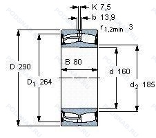 Размер подшипника: 160x290x80 мм.