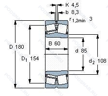 Модификации сферического роликового подшипника 22317-E-C3-W33 — это измененное основное конструктивное исполнение 22317, основные размеры (85x180x60) не отличаются.