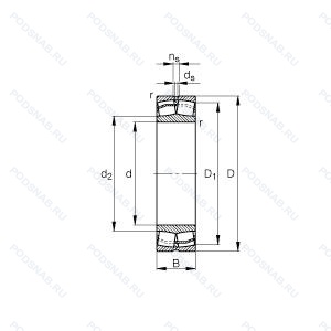 | 22316-E-W33 | Канавка для смазки и три отверстия во внешнем кольце подшипника. Оптимизированная внутренняя конструкция с большими симметричными роликами и сепаратором из штампованной стали. |