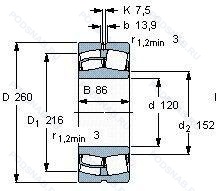 Размер подшипника: 120x260x86 мм.